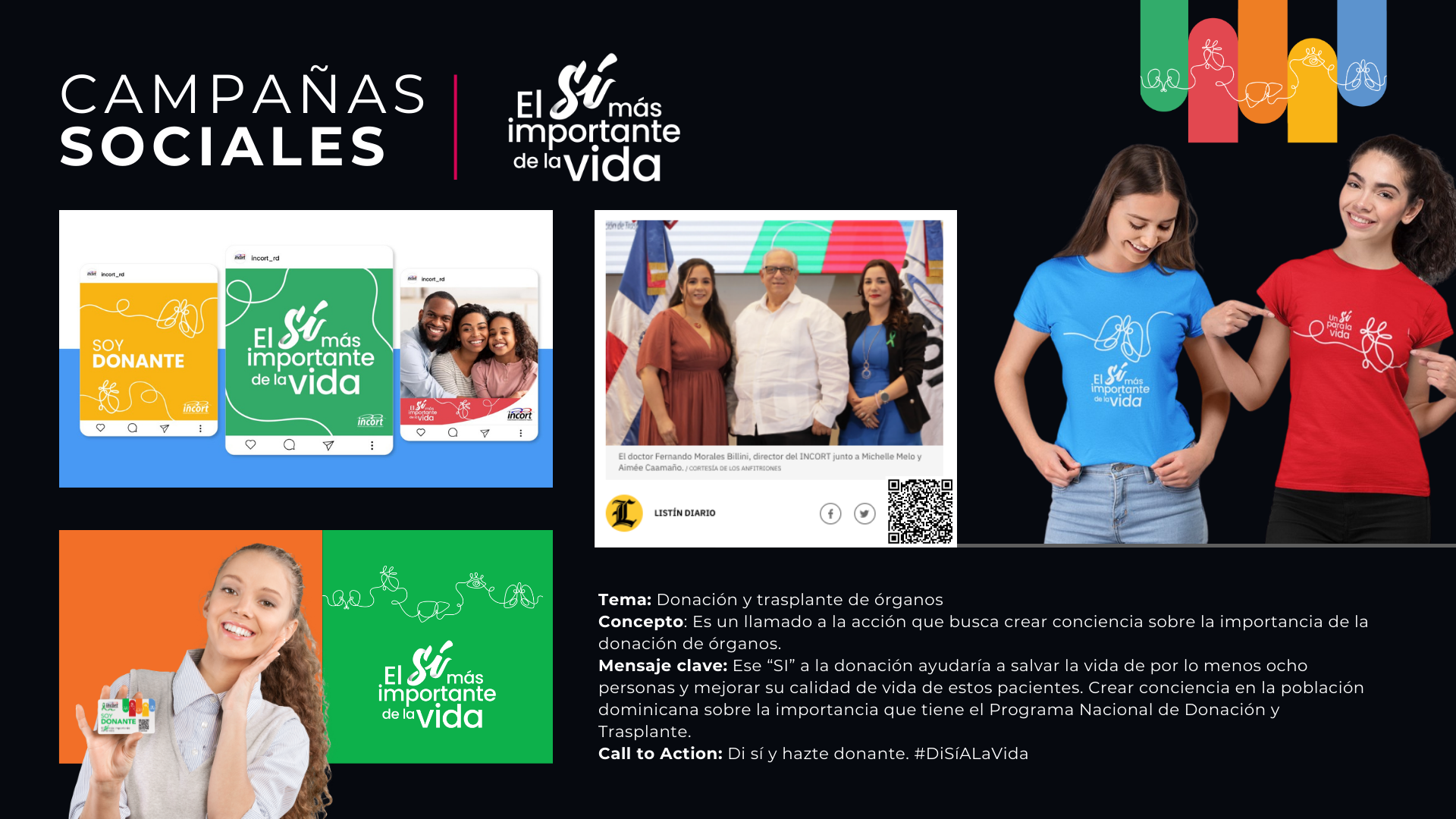 La intervención incluyó la campaña nacional “El Sí más importante de la vida”, integrando comunicación institucional, sensibilización social, medios y plataformas digitales para posicionar la donación como un acto de vida y solidaridad.
